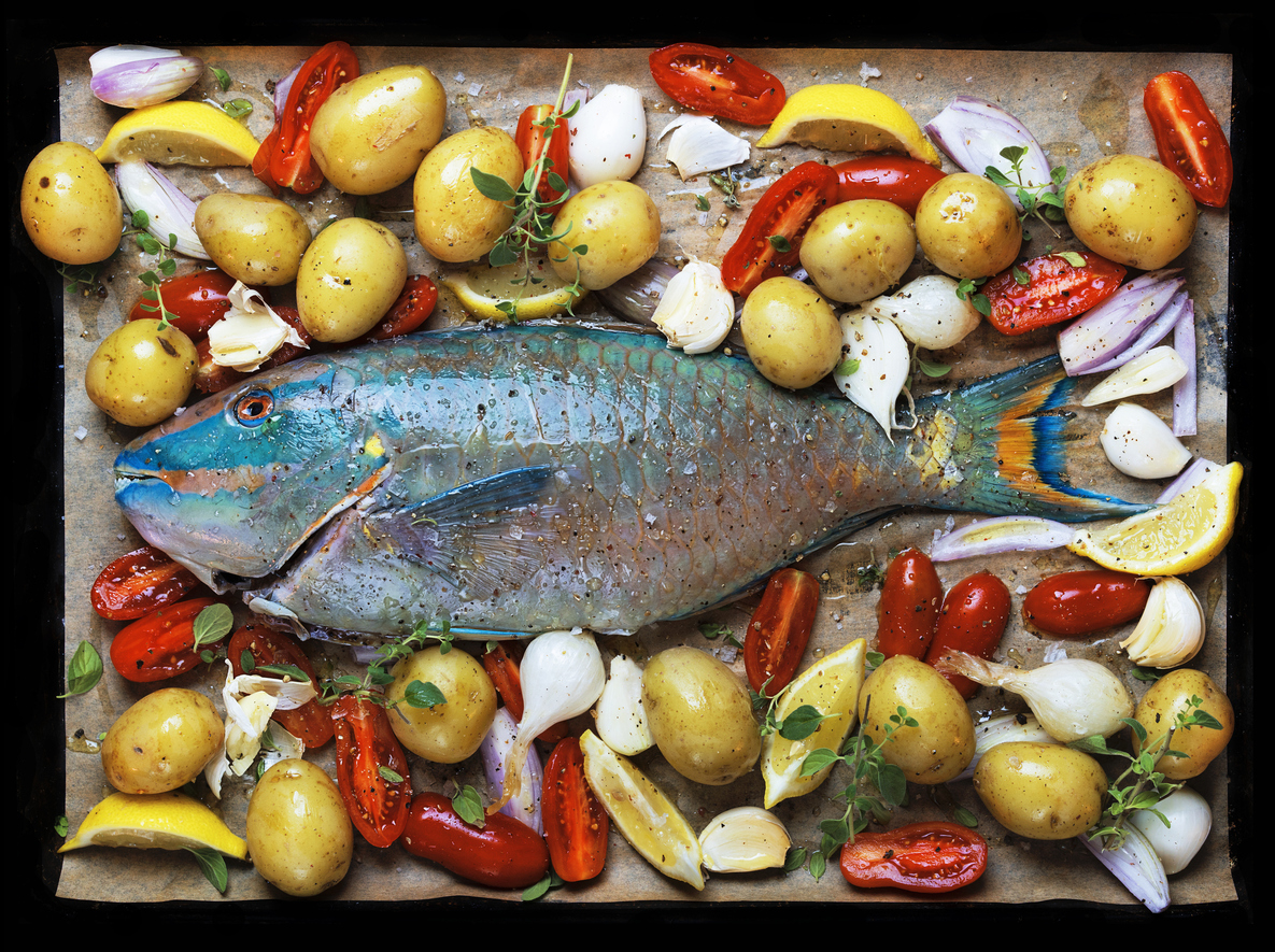 Whole parrot fish ready for the oven